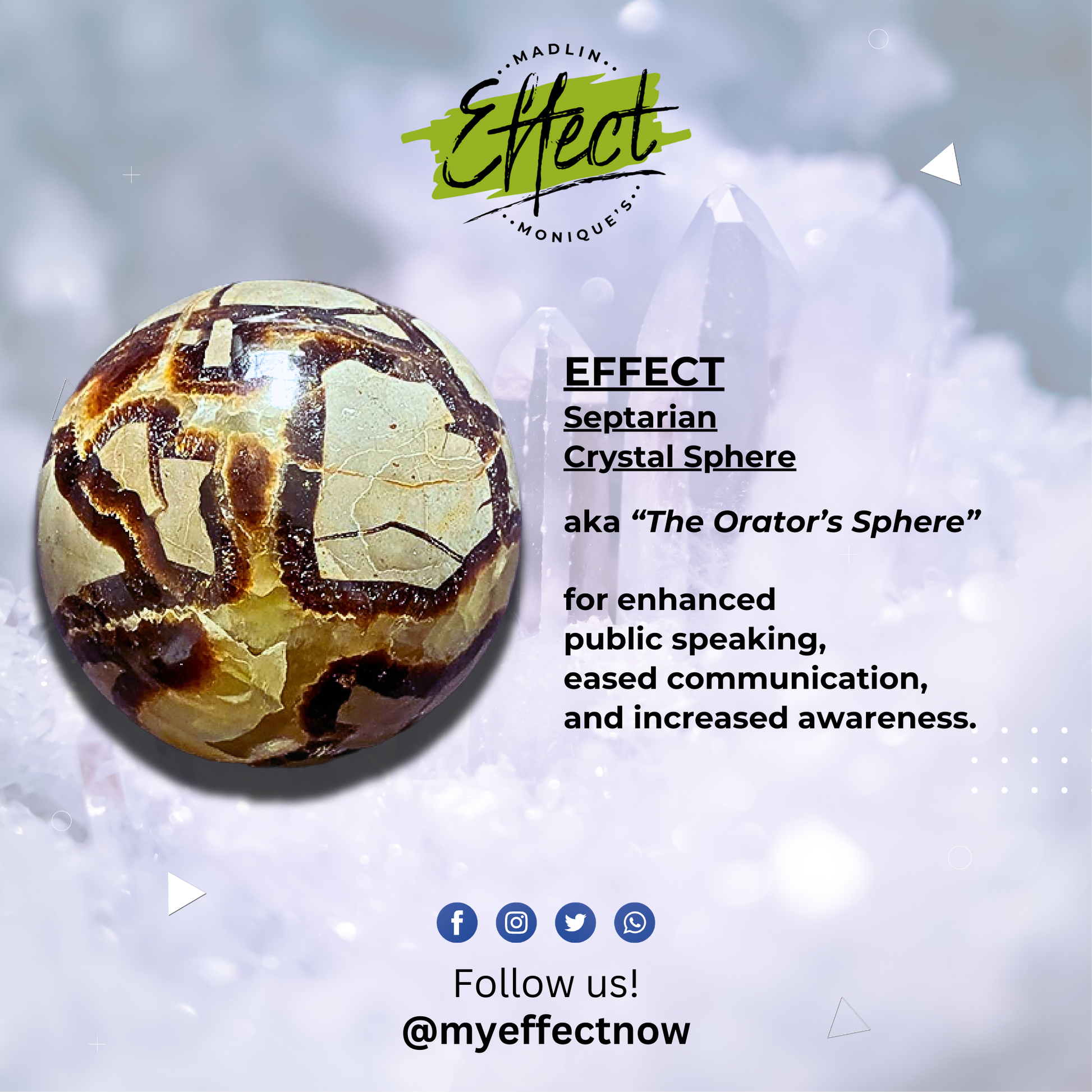 Embark on your effect with the EFFECT Septarian Crystal Sphere. Hold it close, listen to the whispers of time, and honor the Earth’s enduring wisdom. Order yours today and connect to the ancient pulse of existence! 🌎🔮✨