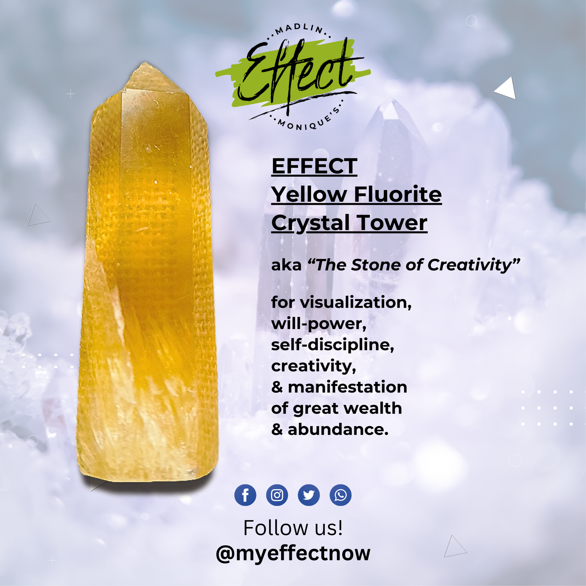 Add EFFECT Yellow Fluorite Crystal Tower to your collection! May it be your beacon of light on both sunny days and cloudy ones. ☀️🌟
